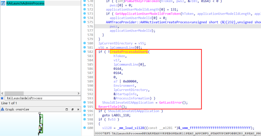 其中封装了CreateProcessAsUser函数来进行提权操作,因此其实在整个UAC提升权限的过程中是appinfo服务完成了提升权限的处理。
