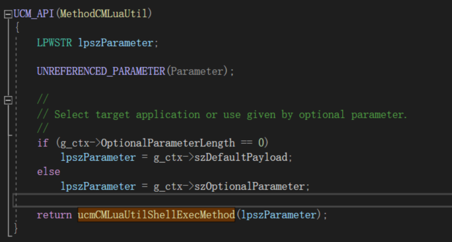 NTSTATUS ucmCMLuaUtilShellExecMethod(