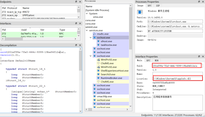 可以看到这里实际上进行了RPC的通信,我们根据绑定句柄的UUID值可以找到相应的接口,这里使用Rpcview进行查看: