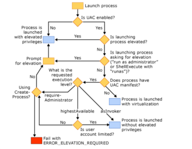 下图清晰描述了如何根据是否启用UAC以及应用程序是否具有UAC清单来运行应用。