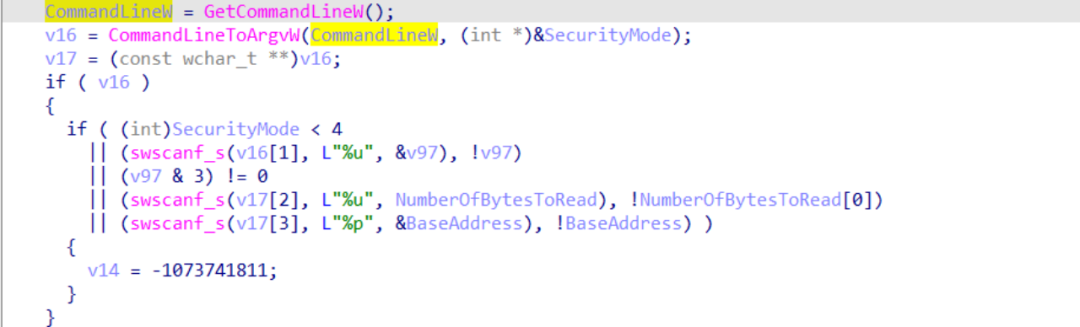 consent的命令行中传入了父进程的pid(appinfo服务的进程pid),一个结构体长度以及一个指向结构体的指针,随后consent调用NtReadVirtualMemory从父进程的内存中读取结构体的内容,这个结构体中就包含了需要特权提升的进程信息。