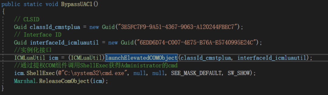 因此当我们创建并实例化该接口时,调用接口的ShellExec方法创建指定进程从而BypassUAC。