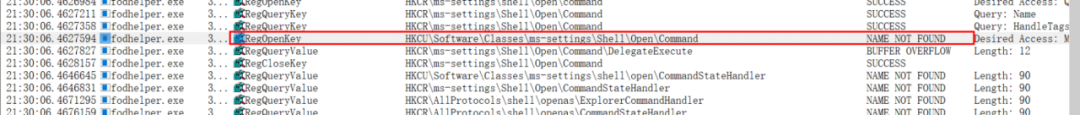 启动fodhelper.exe时,会在注册表中执行以下检查: