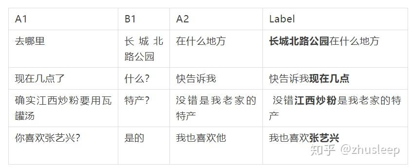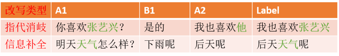 对于用户和系统的对话历史,本文用A1/B1来分别表示用户说的话和系统的回复。对于用户说的话A2,本文要将它改写为label。