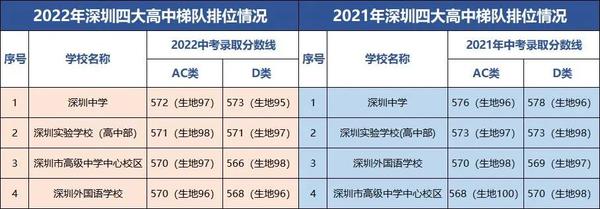 曾在2020年跌至“四大”第四名的深实验,在2021年重回到第二的位置,2022年再继续稳居第二,并与深中的分差缩小到一分。