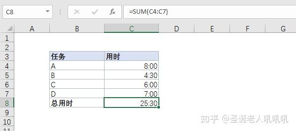 要在 Excel 中累加时间,只需使用 SUM 函数。如果要显示的总时间超过 24 小时,请更改时间格式。