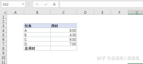 1. 看下面的示例,不同的任务用时不一样,需要计算总用时多少。