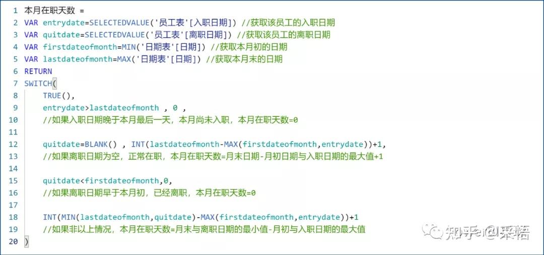 更重要的是要明白自己的业务逻辑,就这个问题来说,就是要知道如何根据入职日期和离职日期来确定在职天数。很多人遇到问题不会用写DAX,觉得DAX难,深究起来,其实是缺乏思考、懒于思考,自己都没有真正想清楚计算逻辑,和DAX有什么关系呢?