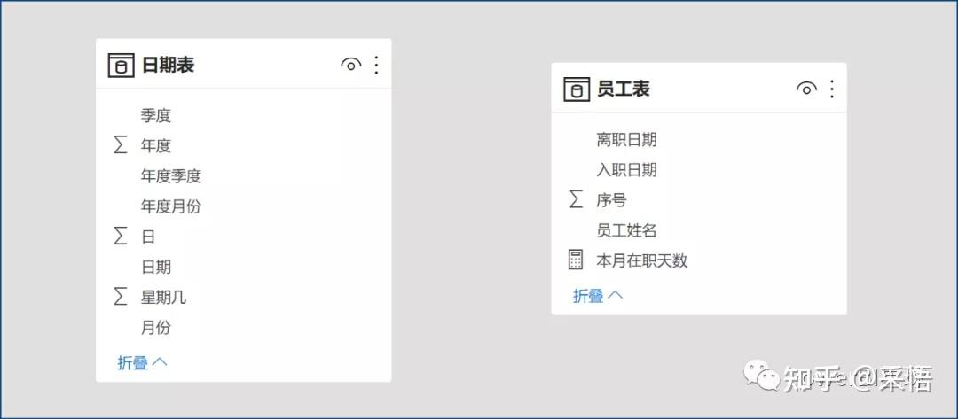因为要按时间点计算,所以建立一个单独的 日期表 是必要的,并且日期表不需要与员工表建立关系。