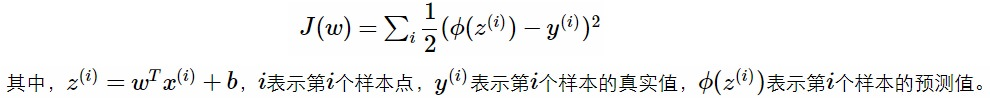 我们很自然的想到使用线性回归中使用的最小二乘作为损失函数,如下式: