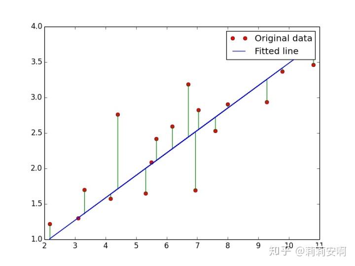 损失函数的意义就是:所有绿色线段长度平方之和。损失函数的值越小,预测得到的