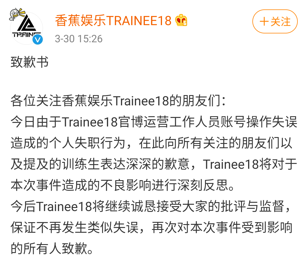 这次的操作让不少人蒙圈,孔雪儿为何会让香蕉娱乐这种大公司下水diss?况且香蕉娱乐的老板是王思聪,让不少网友好奇,难道孔雪儿得罪“王校长”了?其实这次与王思聪并没有什么关系,随后香蕉娱乐发表动态致歉,称是工作人员操作的失误。这是个人账号没有切换?而这篇致歉动态也被网友吐槽称“毫无诚意”!