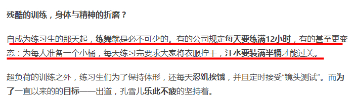 韩国练习生生活着实艰辛,每人每天要练12个小时,衣服拧干的汗水超过半桶才算成功,甚至有些练习生,练习五六年都不能出道,最好的年华都已经过去,只能放弃。虽然孔雪儿目前黑料不断,但孔雪儿的努力的确不能否认,在众多选手中综合能力绝对能排上前三,也是最终C位的热门选手。