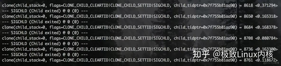 很明显,一个 clone 操作需要几百毫秒,至于 clone 的含义,参考 man 文档: