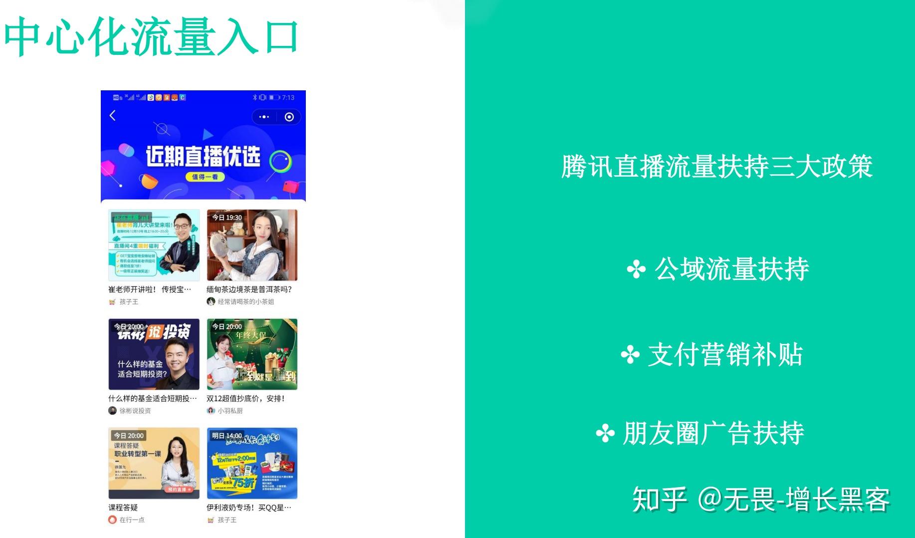 第四点,微信直播的公域流量,除上面讲到的三点之外,微信官方也会提供中心化的流量入口给到优质主播,让优质主播得到更大的曝光量和转化率