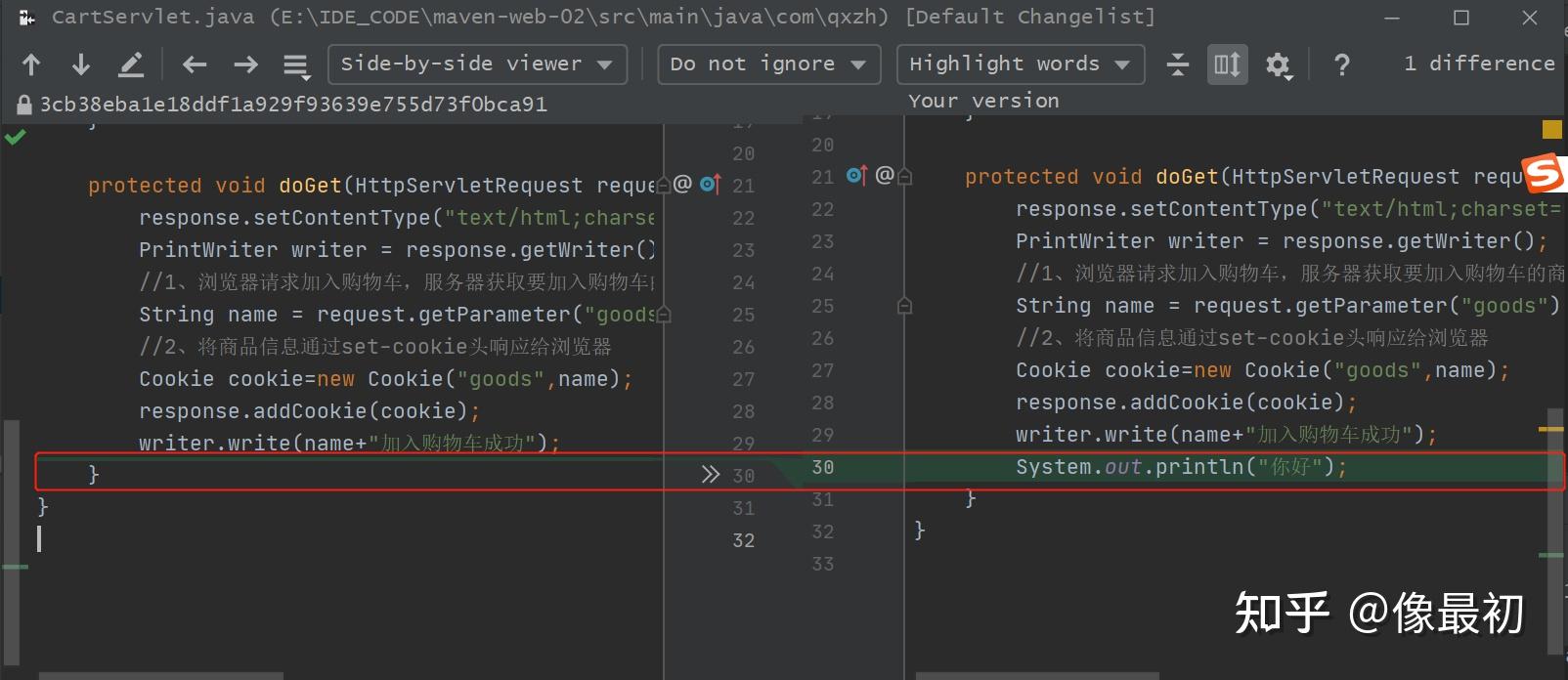 可以看到修改前后的文件对比