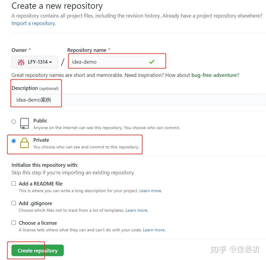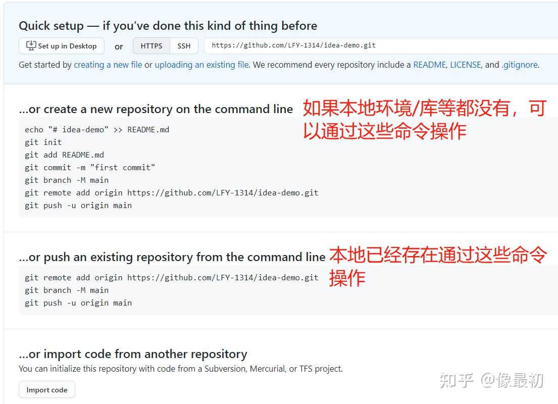 如图:建议新建项目的时候,README文件和.gitignore文件都不要,这样会得到一组初始化命令
