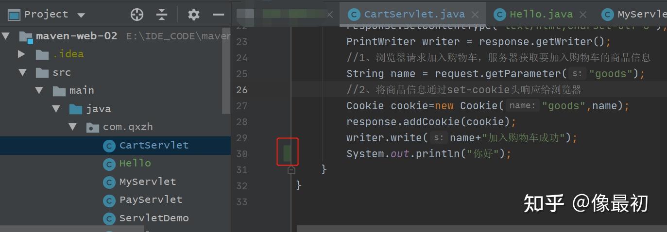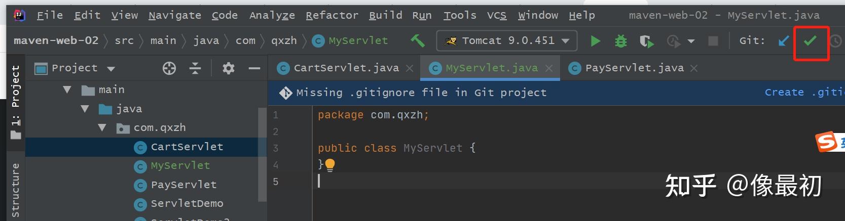 类名变成了绿色,代表git检测到了这个文件,但是并没有提交