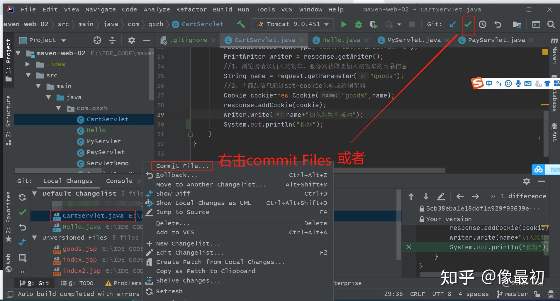 选择有效文件,如pom.xml,书写的jsp、java代码等