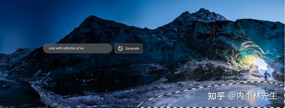 然后,在右下方圈上一块地方,输入“lake with reflection of ice”