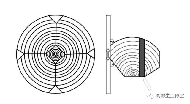 1/4剖切的木皮(图片来源于网络)