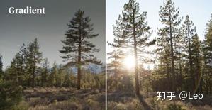 与纯色染色镜片相比,渐变染色镜片从上到下呈由深至浅的色深分布,这与风光摄影中常用的渐变镜(GND)类似,目的是实现在户外佩戴时,视野中获得从天空到地面亮度均衡的视觉感受。