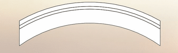 结构原理与前图一致,只是将外层TAC层替换成热塑性的树脂材料层,例如PC层,同样进行热弯后,将偏光片放置到模腔底部,然后将PC树脂注射到偏光片的后表面,偏光片后表面的PC层和注射入的PC树脂在高温下进行良好的熔合,形成一个整体,保压冷却后即得到成型镜片。与偏光片直接热弯成型相比,注射成型得到的镜片,有了镜片材料的支撑,弯度能够得到较好的保持。并且镜片厚度控制灵活,做得较薄的直接作为镜片,做成较厚的基片可后续 加工成各种度数(简称有度数) ,也非常适合进行加加硬和减反射(AR)镀膜等处理。除了PC之外,常见的还有PA等材料。