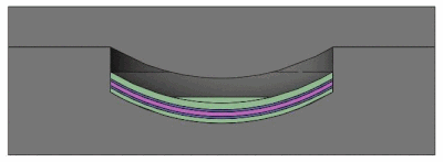 浇注成型与注射成型类似,但仅适用于热固性材料。所用的偏光片结构相对较为简单,偏光片热弯后,将其固定到由玻璃模具构建的模腔中,由浇注口注入单体,经过高温烘烤固化后,偏光片被牢固地包裹在成型的镜片中。可用于浇注成型的材料非常多,包括CR39®, MR®高折射率系列等热固性单体,其余优点 与注射成型类似 。