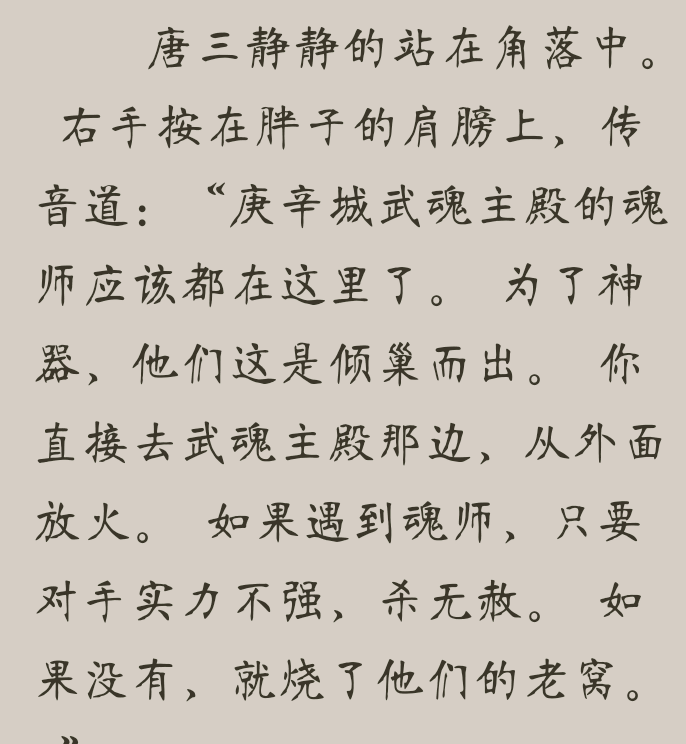 (这里解释一下,杀人面魔蛛这个事儿其实放在任何一个故事的主角身上都没问题,甚至我自己也觉得没问题。问题是偏偏我们的唐家三少要打自己脸啊,给我们唐三少安上伟光正光环,说什么自己要维护魂兽平衡,非必要不杀戮,搞得好像整个斗罗大陆就他一个白左一样,那你杀人面魔蛛有必要吗?事后泄愤也是必要杀戮吗?)