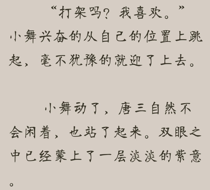 对方学员看不下去,准备一起出手,唯恐天下不乱的小舞准备参与斗殴,而唐三少在后面微微一笑……(你唐三不是见不得你老婆受伤吗?那你别让她到处惹事儿啊,一边纵容,一边包庇,现实世界熊孩子家长也是这德行)