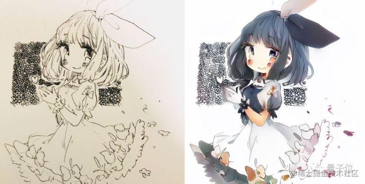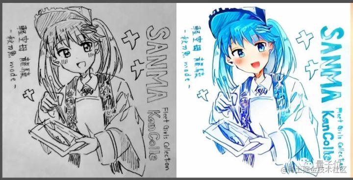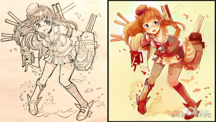 还有一位叫少年,把画师@nanico_2525疑似在课本上画的铅笔涂鸦交给了AI,顿时焕然一新: