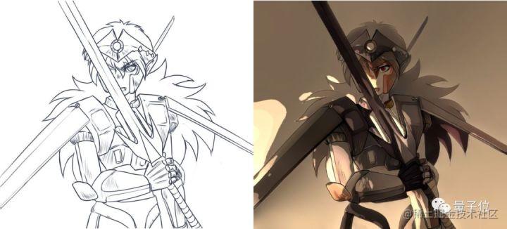 所以,小伙伴们只要上传线稿,选个风格 (像开头讲的那样) ,再放好光源,就能拿到成品了。