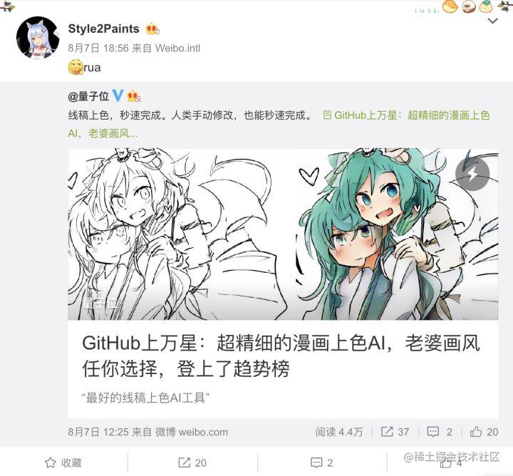这只AI,名字叫做 style2paintV4 。它在GitHub摘下了 一万颗星 ,并登上了趋势榜。