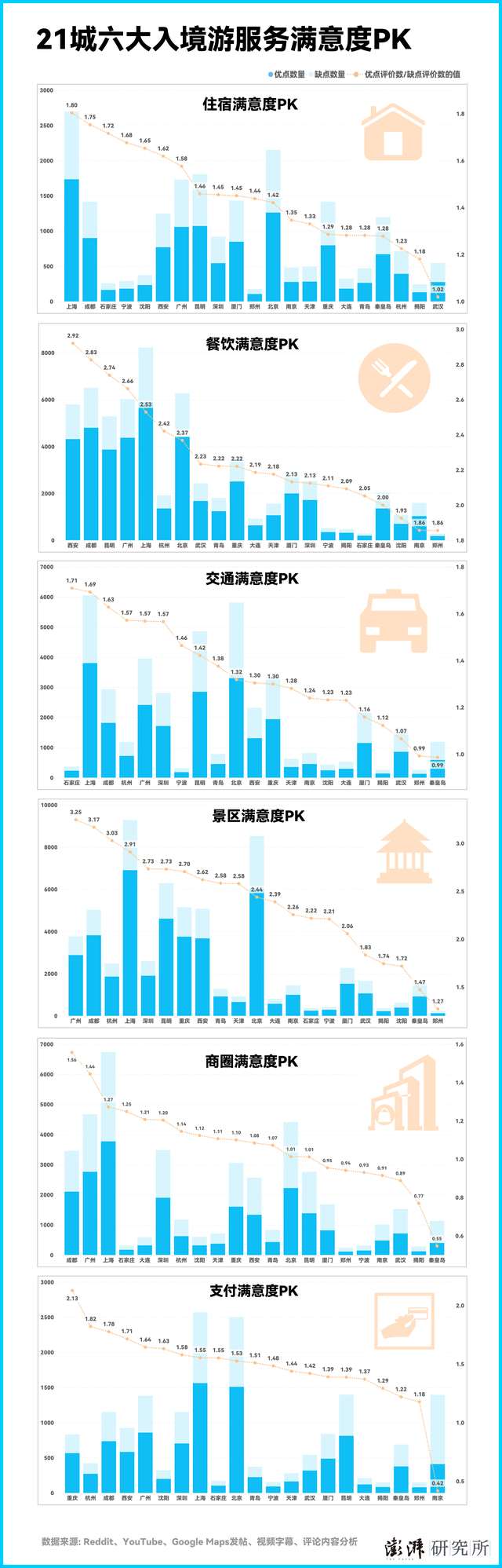 城市满意度PK:从25万条评价,看海外游客对21城的六大服务体验