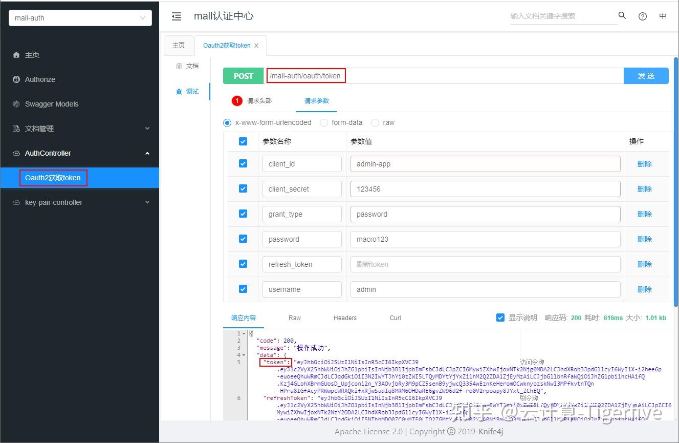 client_id和client_secret为admin-app:123456,前台系统为portal-app:123456;